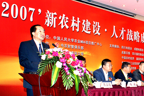 2007新農(nóng)村建設(shè)·人才戰(zhàn)略成都報(bào)告會(huì),四川省畜科飼料有限公司董事長(zhǎng)鄺聲耀先生在會(huì)上發(fā)言。