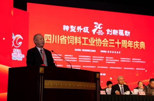 來(lái)自農(nóng)業(yè)部、中國(guó)飼料協(xié)會(huì)、省農(nóng)業(yè)廳的領(lǐng)導(dǎo)、行業(yè)知名專家及企業(yè)代表等800余人親臨盛會(huì)。四川省飼料工業(yè)協(xié)會(huì)會(huì)長(zhǎng)陳代文教授致辭并作三十年發(fā)展總結(jié)報(bào)告,中國(guó)飼料工業(yè)協(xié)會(huì)會(huì)長(zhǎng)李德發(fā)院士、北京飼料工業(yè)協(xié)會(huì)會(huì)長(zhǎng)汪秀艷先后發(fā)言。