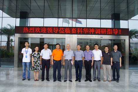 2015年8月12日,在四川省畜牧科學(xué)院蔣小松院長,四川科創(chuàng)飼料產(chǎn)業(yè)技術(shù)研究院理事長、華神生物公司董事長鄺聲耀等人的陪同下,國家科技部農(nóng)村司蔣丹平副司長、許增泰處長、科技部農(nóng)村開發(fā)中心盧兵友處長、四川省科技廳副廳長韓忠成、副處長游曉峰、四川省農(nóng)科院副院長任光俊、川農(nóng)大賈剛教授一行蒞臨成都雙流西航港經(jīng)濟開發(fā)區(qū)的四川科創(chuàng)飼料產(chǎn)業(yè)技術(shù)研究院和四川華神獸用生物制品有限公司進行調(diào)研指導(dǎo)。